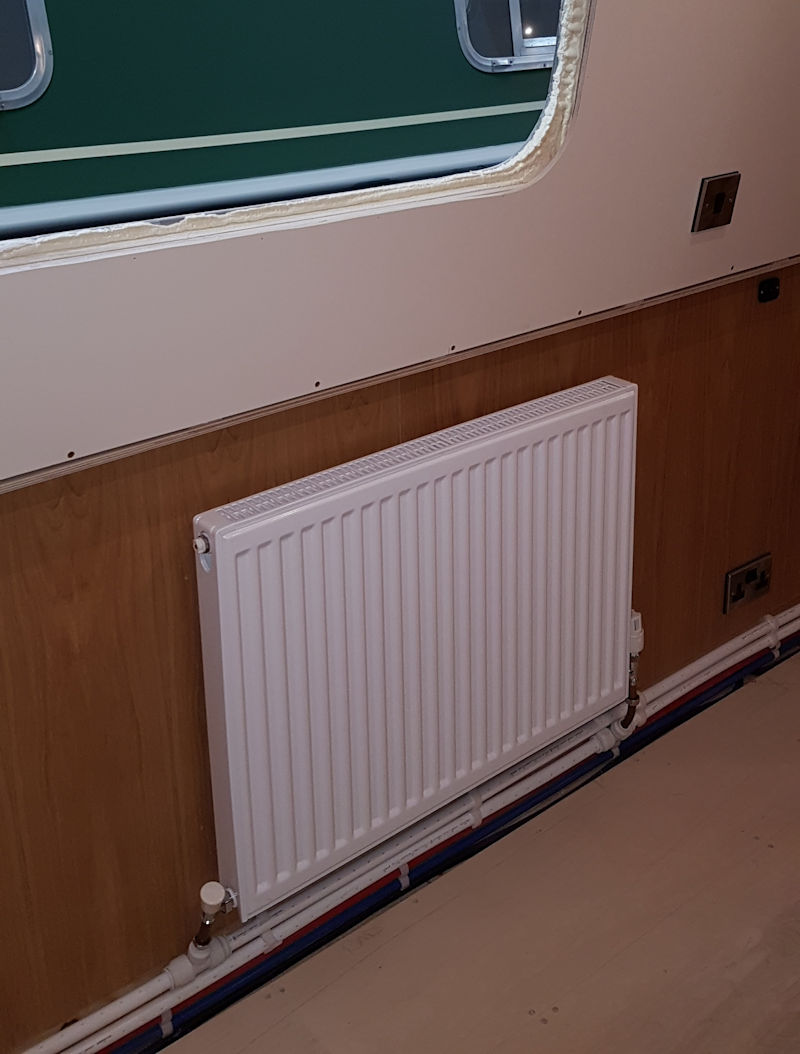 Phil was currently working on the tv fitment which will be attached to the wall out of shot of the picture, in between the two radiators. Plenty of connections to be made! We had a discussion about the possibility of an HDMI connection from the dinette area to the tv screen. Of course we should have thought about this long ago at first fix stage but we only really thought about the tv over Christmas when Andrew was with us. We concluded that the best option is to go for a monitor only rather than a full tv as we only want to use it with the satellite box for Freesat. This should also allow for a better quality screen. Most minimal bezel screen tvs seem not to offer DVD players and although we have not made much use of that option, nor movies stored on disc, it is occasionally useful. The best option is to be able to connect the laptop to the big screen but this involves a cable connection. Simple, we thought, it can go under the floor to avoid a trailing lead to trip over. Not quite as BSS does not allow power cables in the bilge area but it is probable that data connections are OK. It may, however, have to be a 'customer addition'.