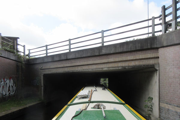 There was now a long level pound as the canal threaded its way through several road crossings including a motorway. This short tunnel may not look much but it is the result of a lot of negotiation and skilled planning and ingenuity that made it eventually possible - the motorways of course grew up whilst the canal was closed to traffic and there seemed no prospect of it ever opening again.