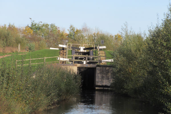 We continued the short distance to the town where the canal leaves the river via the Barge Lock, At normal river levels there is barely any change in level but the catch is that the swing bridge across the middle still has to be opened. Leaving the lock was a but trickier than usual as neither gate wanted to open fully so we had to use both.